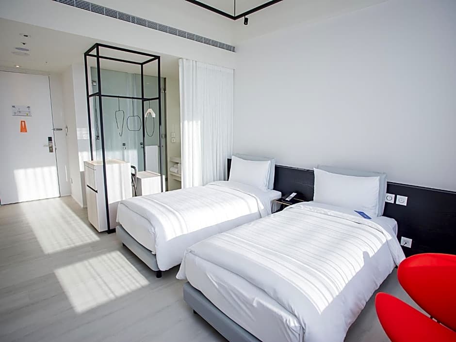 Providing free toiletries, this twin room includes a private bathroom with a walk-in shower, a bidet and a hairdryer. The air-conditioned twin room provides a flat-screen TV with streaming services, a tea and coffee maker, a wardrobe, a safe deposit box as well as city views. The unit offers 2 beds.